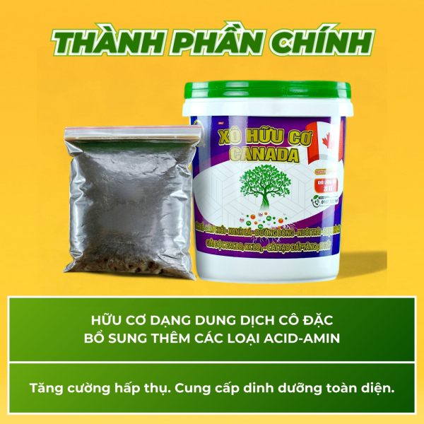 Thành phần: Chất hữu cơ: 23%; Đạm tổng số (Nts): 1%; Lân hữu hiệu (P2O5hh): 2%; Kali hữu hiệu (K2O): 5%; Axit humic (axit humic): 2%; Axit fulvic (axit fulvic): 2%; Canxi (C): 0,36%; Magie (Mg): 0,3%; Đồng (Cu): 200 ppm; Bo (B): 300 ppm; Sắt (Fe): 150 ppm; Kẽm (Zn): 200 ppm; Axit amin: 4,5%; PhH2O: 5; Tỷ trọng: 1,1