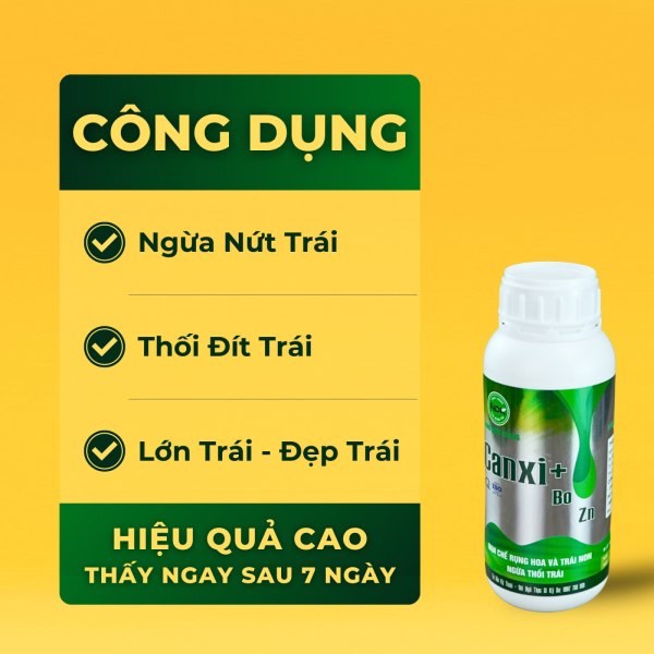 Công dụng: Hạn chế nứt trái - Thối đít trái - Cung cấp Canxi
