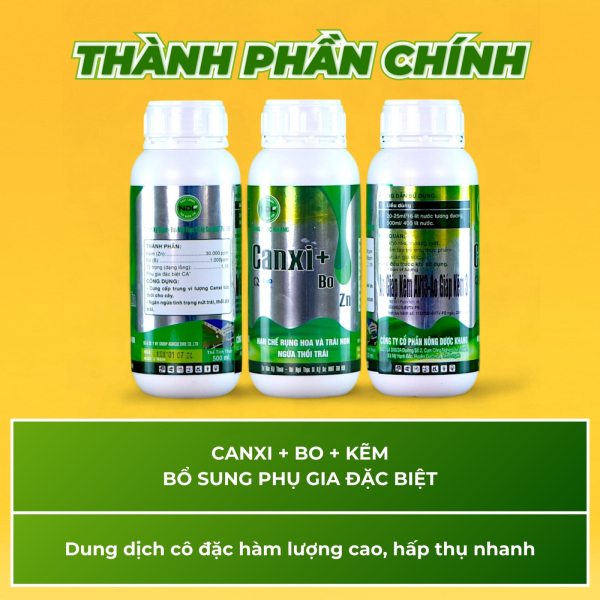 Kẽm (Zn) 30.000 ppm, Bo (B) 1.000 ppm, Canxi vi lượng, phụ gia đặc biệt CA* . Nguyên liệu nhập khẩu cao cấp. Hàm lượng vượt trội.