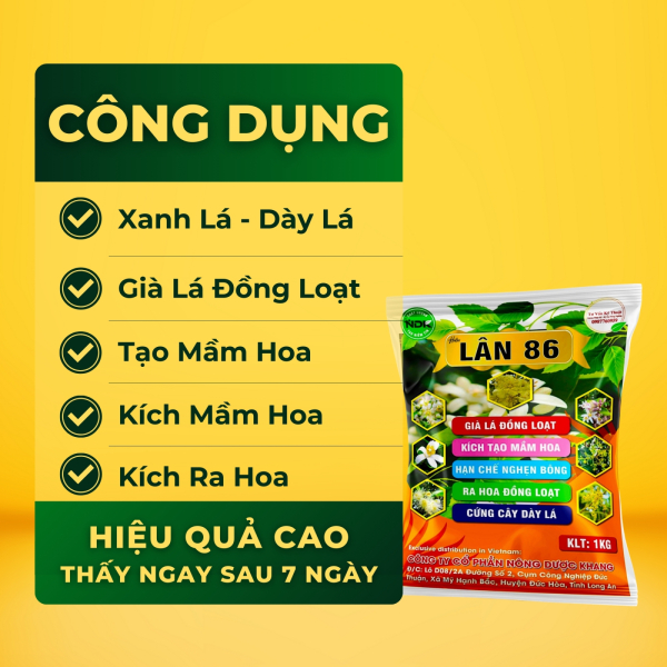 Chào Duy. Đúng vậy, phân Lân 86 NDK thúc đẩy lá già đều, ổn định quang hợp, giúp cây phát triển xanh khỏe và bền vững hơn, tăng sức bền cho cây trồng.