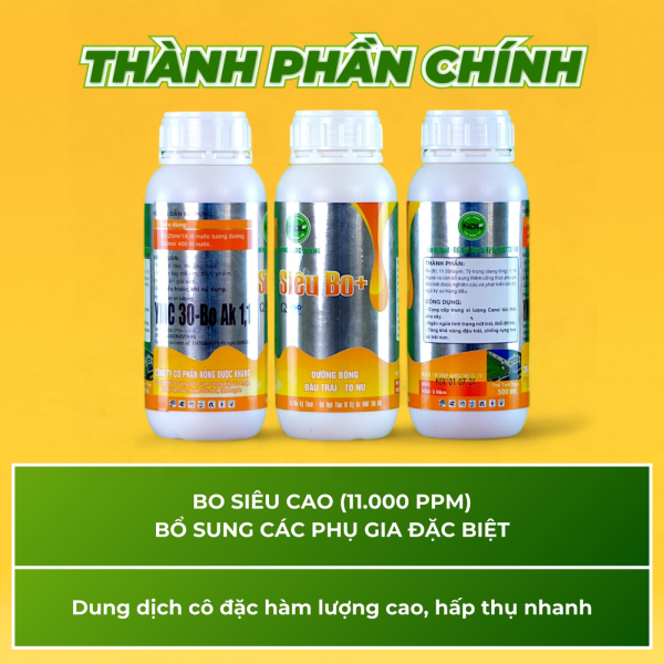 Thành phần: Bo (B): 11,000 ppm; Tỷ trọng (dạng lỏng): 1,19 và công thức phụ gia đặc biệt